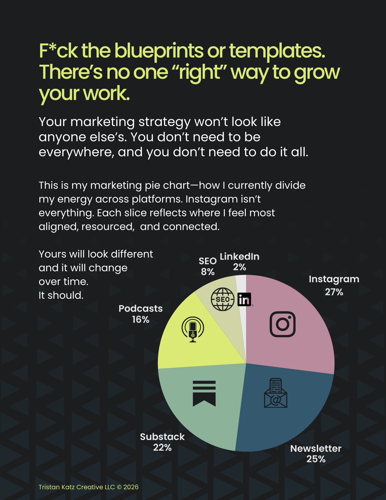 𐄂 A peek at my personal marketing pie chart (and how I divide my energy across platforms)